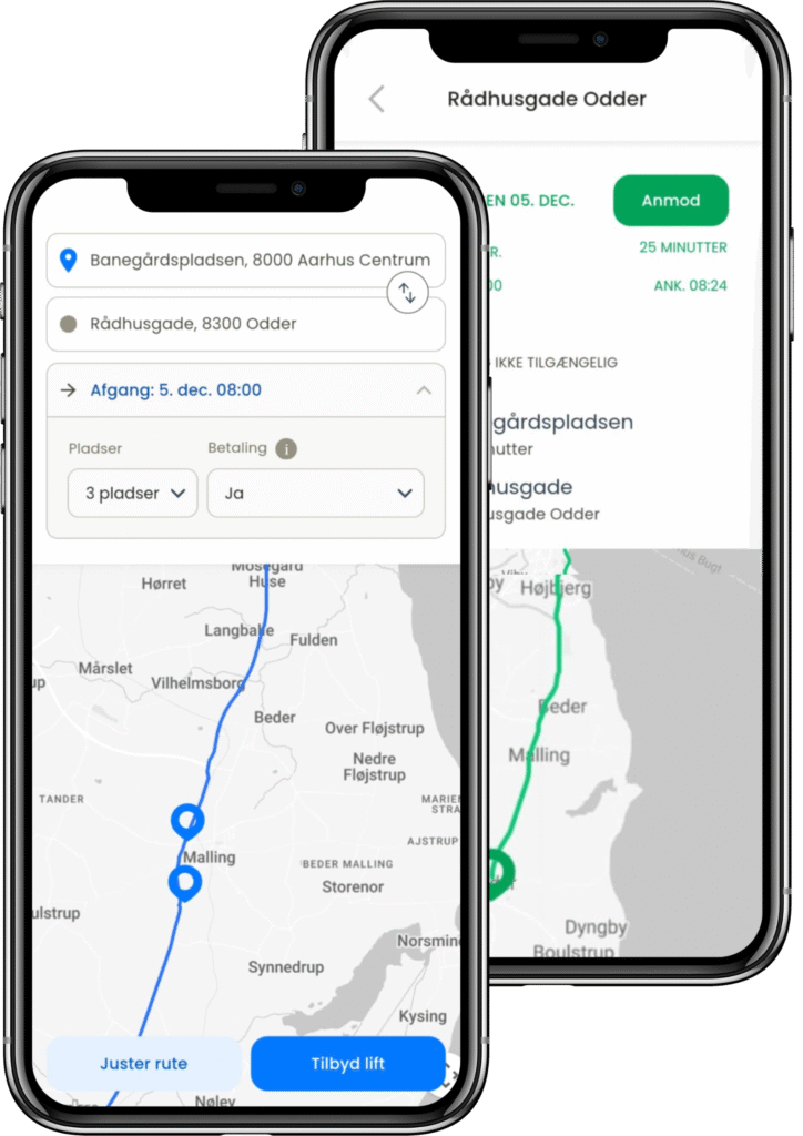 Søg, tilbyd og book lift